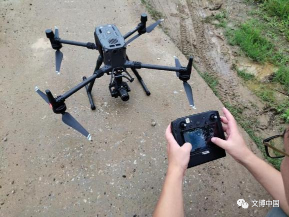 第二天,对遗址保护范围内的区域进行数据采集。研究人员使用无人机在学堂梁子(郧县人遗址)涉及区域进行飞行摄影。因遗址涉及区域范围较广,在进行现场航飞之前,技术人员收集了遗址的相关地理资料,包括坐标系统、高程基准参数、已有的地形图成果与地名资料、控制点布设等,制定了无人机航飞技术方案,规划了无人机飞行航线。这部分数据采集分成两组同时进行。